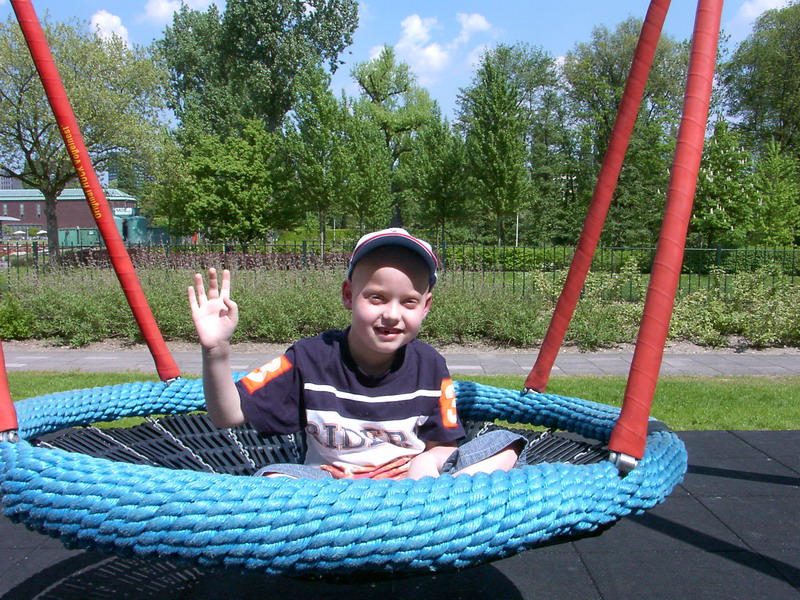 Vrijdag 10 maart 2006: Er zullen er zijn die toch weer naar een mail uit zitten te kijken. Dus………….Jarno had deze keer een rustige nacht. Alleen rond kwart over elf / half twaalf even eruit gemoeten en bij hem gestaan /gezeten omdat hij weer begon te snikken. Mogelijk dat ook hij wakker was geworden door het harde gepiep van de sondevoedingspomp. Die maakt namelijk een behoorlijk hard signaal als de voeding er door heen gelopen is. De bedoeling is dat er dan gauw een verpleegkundige komt en het afzet /afsluit. Nou ja, ondertussen weet deze mama ( en papa ) het OFF knopje wel te vinden hoor ( als het te lang duurt). Maar verders gaan we niet knoeien aan het systeem natuurlijk. Vanmorgen rond 8.30 uur werd Jarno in z`n bed vervoerd naar de Nucleaire onderzoeksafdeling in Erasmus. We hoefden het bed trouwens niet zelf te trekken /duwen. Gezien de lange afstand en het toch moeilijk te sturen bed kwam er een “vervoersdienst”. Er werd een elektrisch karretje onder het bed geschoven en … zoef. Eenmaal daar aangekomen werd er al gauw de licht radioactieve stof in het infuus in z`n arm ( wat speciaal voor dit doel vanaf maandag t/m vandaag in z`n linkerhand was blijven zitten ) ingespoten. Het zou koud aanvoelen. Inderdaad zag je wel wat reactie bij hem. Toen werd hij overgetild door papa op een “tafel”. Omdat het ook bij deze scan weer van behoorlijk belang is dat de patient zo stil mogelijk ligt voor een optimale beeldopname, werd hij goed vastgelegd. Vanaf z`n schouders t/m z`n onderbenen in een soort van opblaasbare “spalk”. En dan nog met een aantal banden om z`n hoofdje. Jullie begrijpen dat hij dat toch niet echt prettig vond. En dan kwam dat scan apparaat steeds maar dichter naar en rond z`n hoofd af. Echt tot bijna tegen z`n gezicht /hoofd. Moet een heel eng benauwd gevoel geven! Claustrofobisch ! Als je dat niet bent wordt je het wel na zoveel keren in MRI / Ct / Spect scan apparaten. Deze laatste was echt wel het “engste” hoor. Geen wonder dus ( ? ) dat hij toch wel in verzet ging of althans probeerde. Ook snikken en even heel hard huilen. We hebben heel hard ons best gedaan om hem af te leiden door voorlezen en vertellen over alledaagse dingen. En te prijzen dat hij het zo goed deed, etc. Ondertussen moest een verpleegkundige toch nog extra z`n hoofd vasthouden om `m maar zo goed mogelijk stil te houden voor de “foto`s”. Na zo`n 20 minuten was het klaar en gingen ze voor ze hem losmaakten eerst kijken of de dokter tevreden was over de kwaliteit. Pffff……..gelukkig was dat zo, dus hij mocht los en over naar z`n bed. Hij was helemaal klam van het zweten. Toen weer een hele tijd wachten op de gang voordat de vervoersdienst weer kwam. Ondertussen ging de onrust weer verder. Eenmaal terug op de afdeling was het alweer tijd voor de sondevoeding. daarna zouden een verplk. en ik (mama) hem gaan douchen op de douchebrancard, maar die was ingepikt door een ander. Daarna werd de thermostaatkraan vervangen. Dus moesten we daar eerst weer op wachten. Ron was ondertussen maar eens naar de KPN, Toren op Zuid, gegaan. Naar hem komen ze nl. tot nu toe niet toe ! Uiteindelijk was Jarno net voor het rustuur (12.00 uur) weer schoon/ fris en moe ! Dus tot 14. 00 uur lekker geslapen. De uitslag komt (waarschijnlijk ) maandag. We zitten dus weer in spanning. Vanmiddag tijdens het hebben van bezoek toch ook weer knappie`s onrustig. Van alles geprobeerd. Op schoot, in bed , in z`n stoeltje. Strelen, knuffelen. Met rust laten. T.v. boekje, etc, etc. Machteloosheid, vraagtekens, etc, etc. Vanavond na 20 uur is hij dan toch gaan slapen, zo heeft Ron me net laten weten. Nu maar hopen dat hij dat vannacht ook lekker blijft doen. Ik ga het in elk geval zo ook proberen!